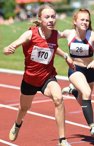 Ganz besonders schnell unterwegs ist aktuell Sina Raczek, die bei ihrem „Heimspiel“ in Emmering ihre 100-Meter-Bestzeit erneut steigern konnte und bei leichtem Gegenwind in 12,55 Sekunden ins Ziel kam. Mit auch sonst sehr starken Leistungen und einer weiteren Bestleistung im Weitsprung (5,17 Meter) siegte sie komfortabel mit 133 Punkten Vorsprung vor Nina Siedler (VfL Buchloe; 2577) und Franziska Schlichting (TV Hauzenberg; 2562) im Block Sprint/Sprung der W 14.