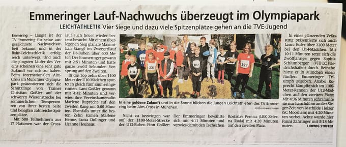Emmeringer Lauf-Nachwuchs überzeugt im Olympiapark 9. November 2022 News & Presse, Presse 09.11.2022 / Münchner Merkur Schlagwörter: Alm-Cross, Jugend, Läufer, Nachwuchs, Olympiapark, Sieg, Sieger, TV Emmering, TVE