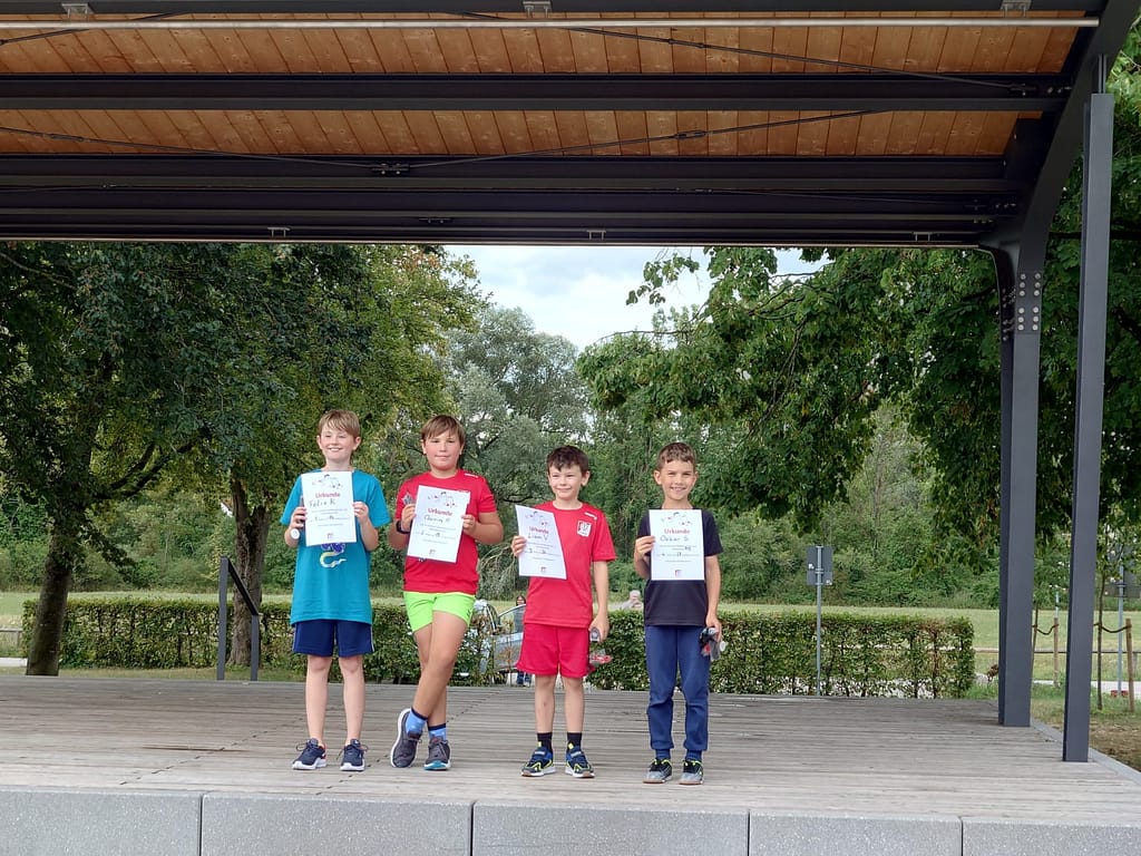 Nun durften auch die Jungs der M8 ihre Urkunden in Empfang nehmen. Lius S war der erste, der sich über eine Platzierung unter den Top 3 freuen durfte. Den Platz vor ihm ergatterte Maximilian W. Klarer Gewinner in dieser Altersklasse wurde Maxi S, der alle 9 Disziplinen in seiner Altersklasse gewonnen hatte.