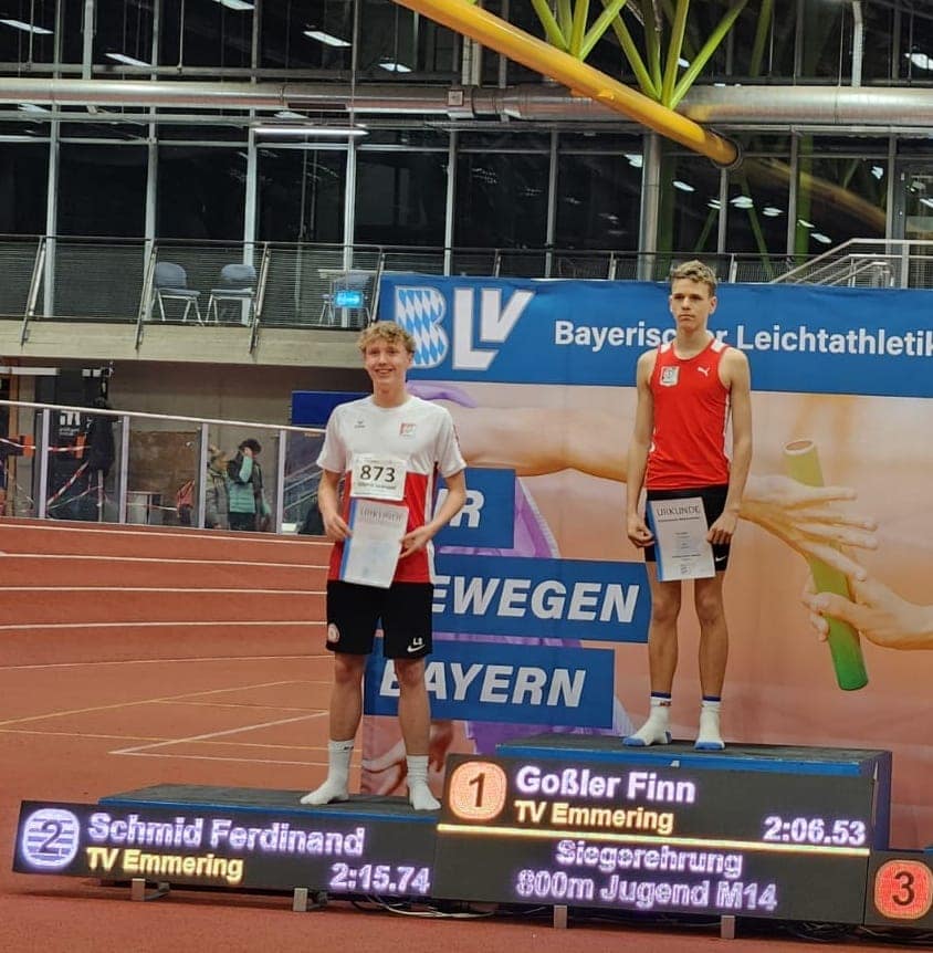 🥇 Finn Goßler (M14) lief in einem temporeichen Rennen zu 2:06,53 Minuten – Südbayerischer Meister und neuer Bayerischer Hallenrekord!