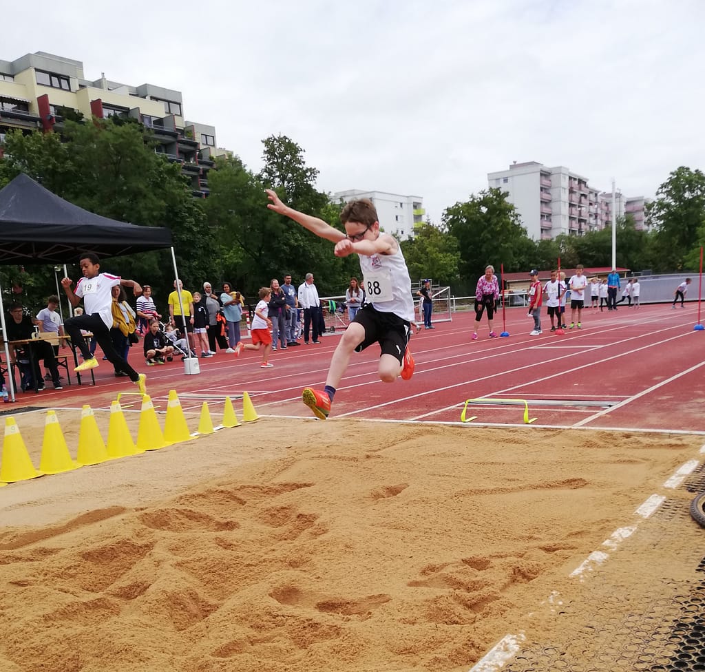 Emmerings Leichtathletik-Nachwuchs begab sich am 02.07.23 ins benachbarte Germering, um den nächsten Teamwettkampf zu absolvieren. Bei Nieselregen und kühlen, fast schon herbstlichen Temperaturen, trafen die kleinen Athletinnen und Athleten der U8 und U10 im Stadion am örtlichen Hallenbad ein. „Die (Lauf)Bahn und der Weitsprungsand sind ganz schön glatt und glitschig“, stellten sie beim Aufwärmen fest.